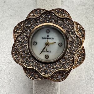 Boussivie Watch Womens 32mm Flower Pave Rhinestone Bezel Gold Tone New Battery
