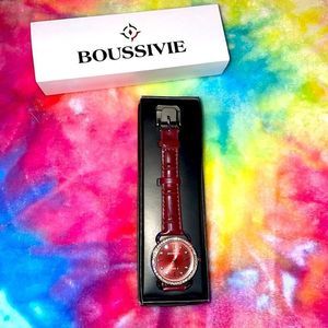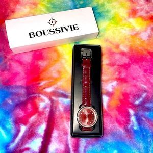 *Faux crocodile leather like strap, 9" long with 30 mm Rose gold face embellished with a halo of clear crystals