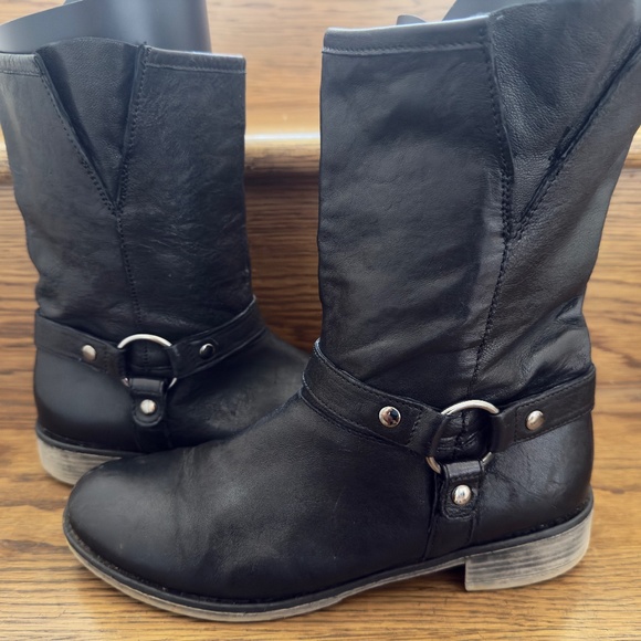Boutique 9 Black Leather Harness Ankle Boots 8.5