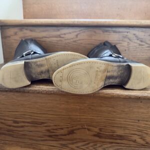 These 8.5 sizes boots were worn by me approximately 10 x. They have a lighter color bottom, which makes them look cool. Very small marks on leather, could be touched up or look somewhat rugged! The calf (top of boot) will fit any size calf, see photo of side of boot. With the harness looks like a Frye boot. Comfort and stylish.