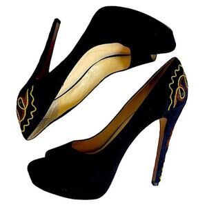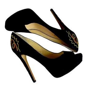 Boutique 9 Chryso Black Suede Embellished Peep Toe Shoes Size 8