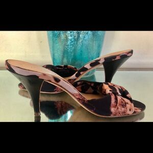 Boutique 9 Penelope Fabric Heel Slides Women’s Shoes Slip-On Size 8 Medium. Leather Lined Insole & Outsole. Animal Print Heel 3.3/4”. Very Good Preowned Condition!