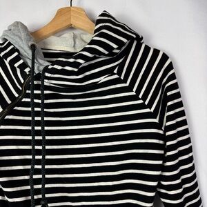 Boutique Ampersand Ave Black & White Stripe Double Layer Hoodie Sweatshirt S