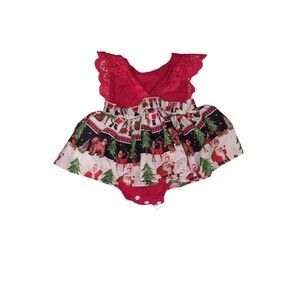 Boutique Baby Girl 9-12 Months Romper Pleated Dress One Piece Christmas Santa
