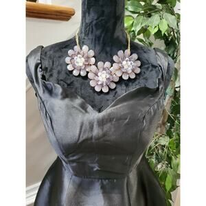 Boutique Banjul Women Solid Black 100% Polyester Sleeveless Knee Length Dress M