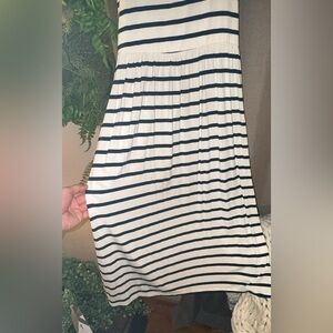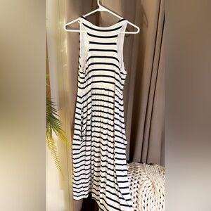 💥Boutique Bellamie Navy White Striped Sleeveless Dress w/Pockets Women’s Size LG