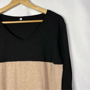 Boutique Black Brown & Gray Colorblock Crewneck Long Sleeve T-Shirt M