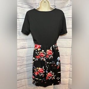 Boutique Black Floral Short Sleeve Knee Length Swing Dress with Pockets