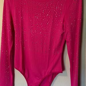 Boutique Bling Hot Pink Long Sleeve Body Suit NWOT