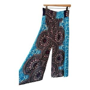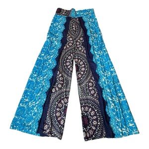 Boutique Blue Turquoise Harem Palazzo Hippie Pull On Stretch Back Pants NWOT OS