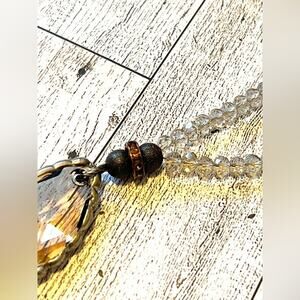 Boutique Boho Handcrafted Clear Crystal Bead Teardrop Pendant Necklace