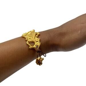 Boutique Boho Handmade Chunky Gold Foil Nugget Leather Statement Bracelet