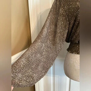 Boutique Boho Olive Green polka dot Blouse Small Peach Love California NWT