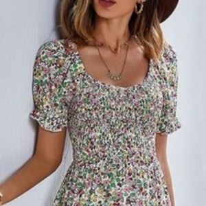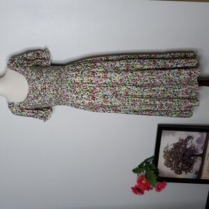 Boutique Boho Summer Floral Midi Dress Ruffle Calico Smocking Bohemian Spring