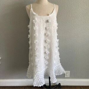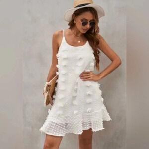 Boutique Boho White Jacquard Ruffle Mini Dress Size Small