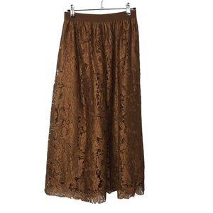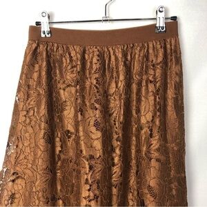 Boutique Brown Lace High Waist A-Line Midi Skirt 4