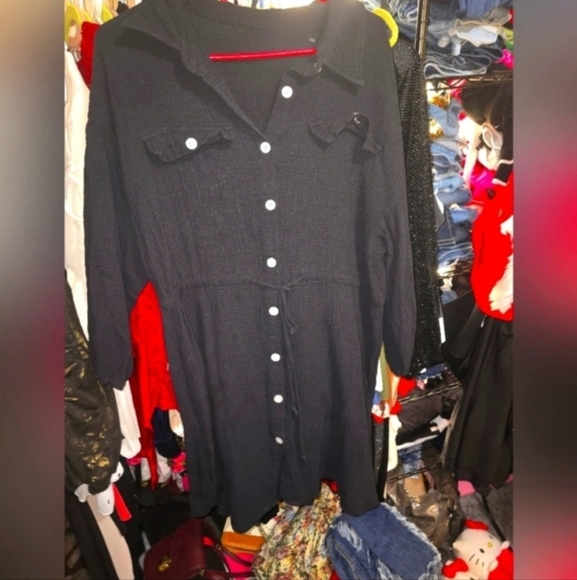 🍁🍂Boutique Button Up Collared Neck Drawstring Shirt Dress 1x
