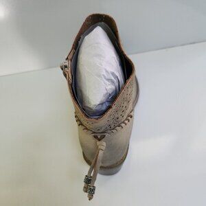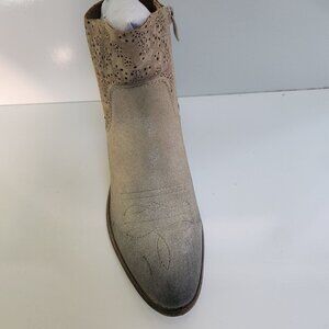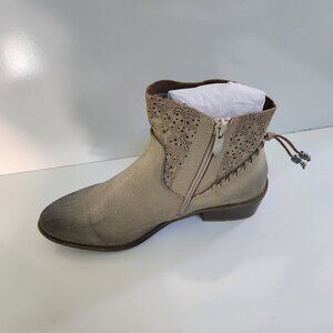 Boutique By Corkys NIB Dazzeling Gold Western Cowgirl Boots Size 10. Subtle Gold, Manufactured Distressing, Laser Cut Design, Braided Tie Detail, Inside Zip Closure, 1.5" Stacked Heel, Unique
