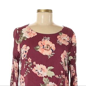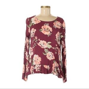 Boutique C Boho Floral Wine Ruffle Long Sleeve Blouse Size M NWT