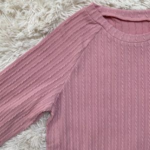 Boutique Cable Pattern long sleeve top in Pink. The look of a cable knit sweater with the ease & weight of a top.