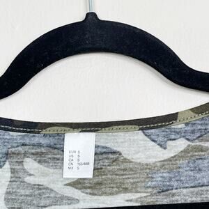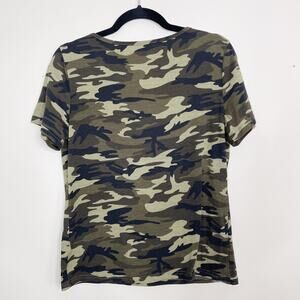 Boutique Camo Printed Cross Front V Neck Short Sleeve Tee Small S Green Brown