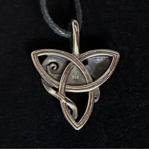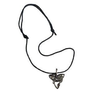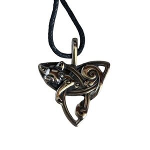 🌺 Boutique Celtic Cat Silver Tone Long Adjustable Pendant Necklace NIB
