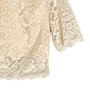 Boutique Cream Lace Short Sleeve Neutral Stretchy Crop Top Size S