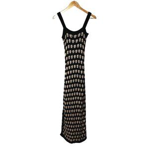Boutique Crochet Knit Maxi Dress Black Ivory Y2k Resort Slit Sirencore Boho Sz S
