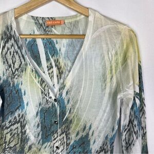 Boutique Cut Cute Y2K Blue & Green Printed Button Down Cardigan Sweater S