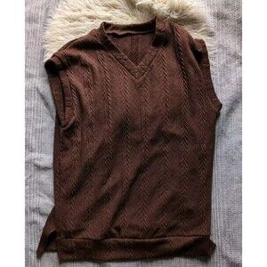 Boutique Dazy Dark Chocate Brown Cable Knit V-Neck Sleeveless Sweater Vest M