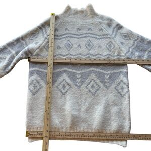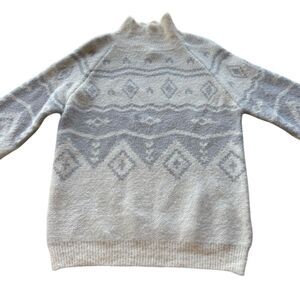 Boutique Designer Soft Fuzzy Cream Tribal White Birch Balloon Sleeve Sweater M