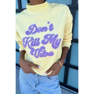 Boutique Don't Kill My Vibe Yellow Pullover Sweatshirt M