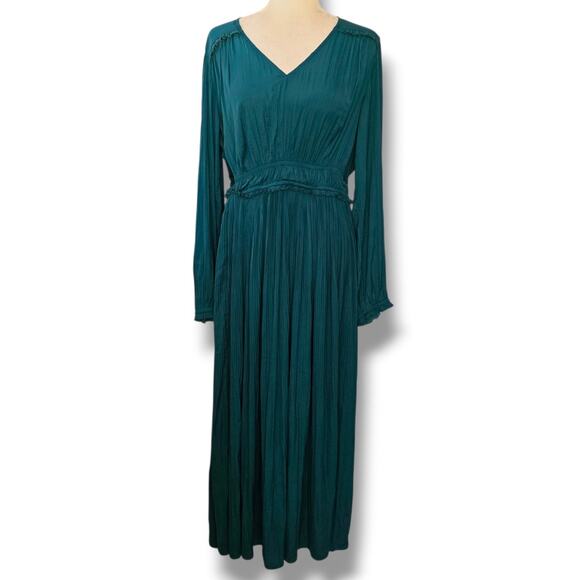 Boutique Downeast Maxi Dress Size L Pleated Emerald Green Holiday Modest NEW