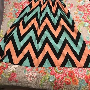Chevron boutique dress, silk skirt with jersey top. Razor back, higher than mid thigh