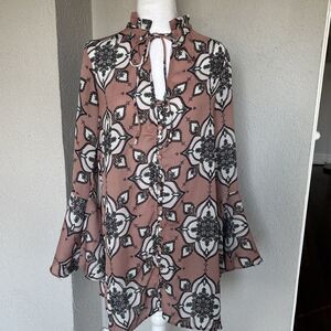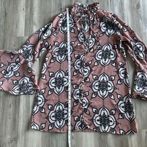 Boutique En Crème Long Sleeved Paisley Dress With Flare Sleeves - Size Medium