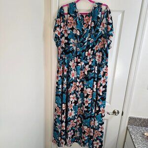 Boutique Floral Tropical Cold Shoulder Maxi Dress