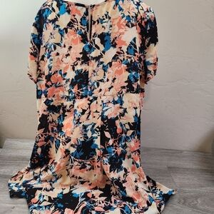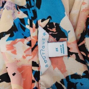 Boutique Floral Tunic Top 2X High-Low Scoop Neck Oversized Breezy
