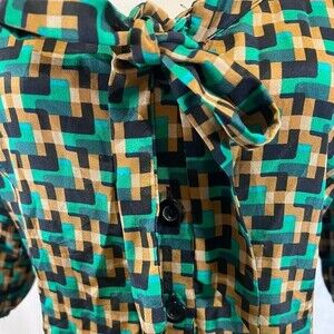 Boutique Forever 21 green and tan geo print retro button down dress size medium