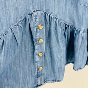 Boutique Fosh Chambray Peplum Blouse Long Bell Sleeve V-Neck Denim Top Size L