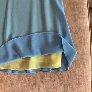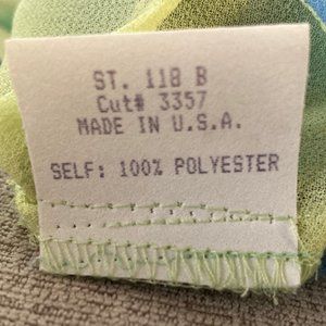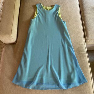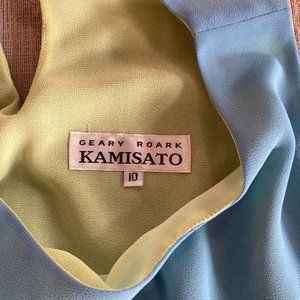 Selling this vintage Geary Roark Kamisato Chiffon Dress. It's sleeveless with high crew neck and keyhole closure in back. It's a beautiful blue with an inside layer of lime green. It has a matching lime green scarf with blue edge stitching. It's only been worn once to a wedding so it's in pristine condition and has been preserved in a garment bag. Size 10. Measurements below.