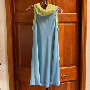 Boutique Geary Roark Kamisato Sleeveless Dress blue/lime green w/scarf - Size 10