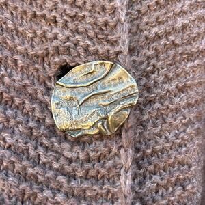 Boutique Hand Knit Oversized Soft Brown Cardigan Sweater Sterling Silver XL