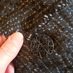 Handmade Brigitte NYC Black V Neck Semi Sheer Long Sleeve Woven Wool Blend Blazer