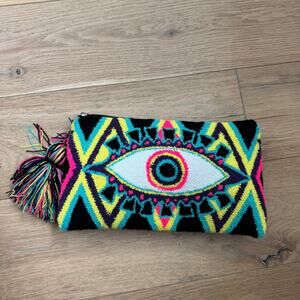 Boutique Handmade Evil Eye Woven Convertible Colorful Clutch Purse Tasseled