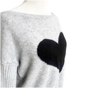 Boutique Heart Pullover Sweater Size XL Black Gray Scoop Neck Cabin Fall Comfy