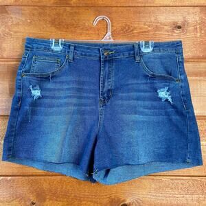 Boutique High Rise XL Medium Wash Raw Hem Cut Off Stretchy Jean Denim Shorts