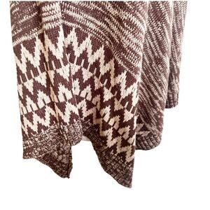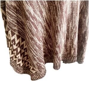 Boutique Knitted Pancho Tan Brown Aztec Design Size L/XL Cowl Neck Buttons