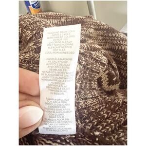 This Boutique Knitted Pancho in Tan Brown mwith an Aztec Design is a stylish and unique sweater made from a tight-knit blend of cotton and acrylic. The cowl neck and button accents add a touch of sophistication, making it suitable for both party and casual occasions. The geometric Aztec pattern gives it a trendy and tribal look, perfect for the winter, fall, and spring seasons. This size L/XL sweater is machine washable and comes in a regular fit, making it a versatile and fashionable addition to any woman's wardrobe.