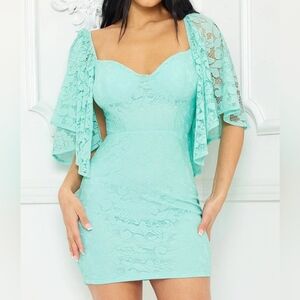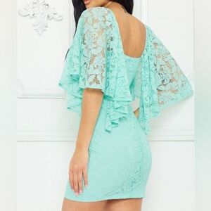 Boutique Lace Cape Sleeve Mini Dress Aqua Mint Green