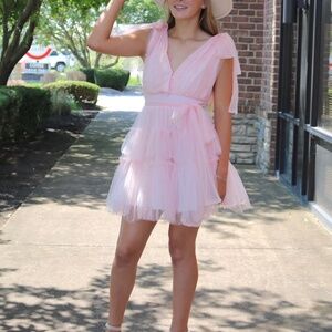 Boutique - Layered Tulle Mini Dress Color Blush Sz Large - NWT